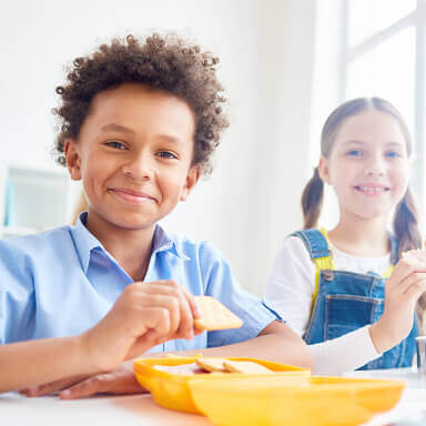 By eating family-style and serving themselves, children learn about making healthy choices and the connection between food and community.